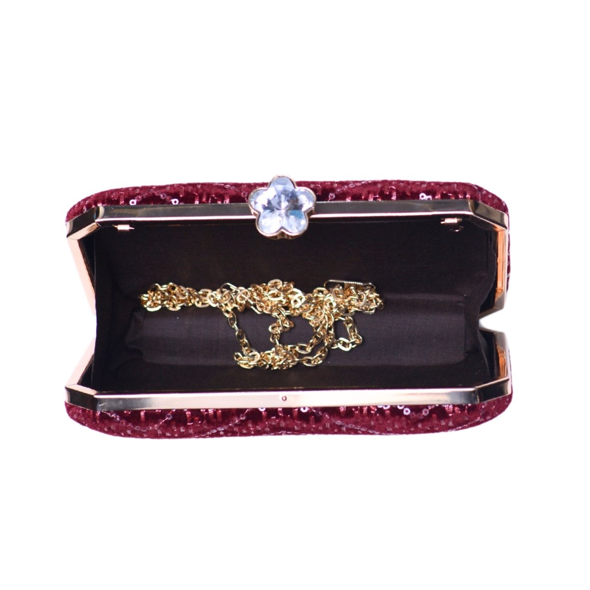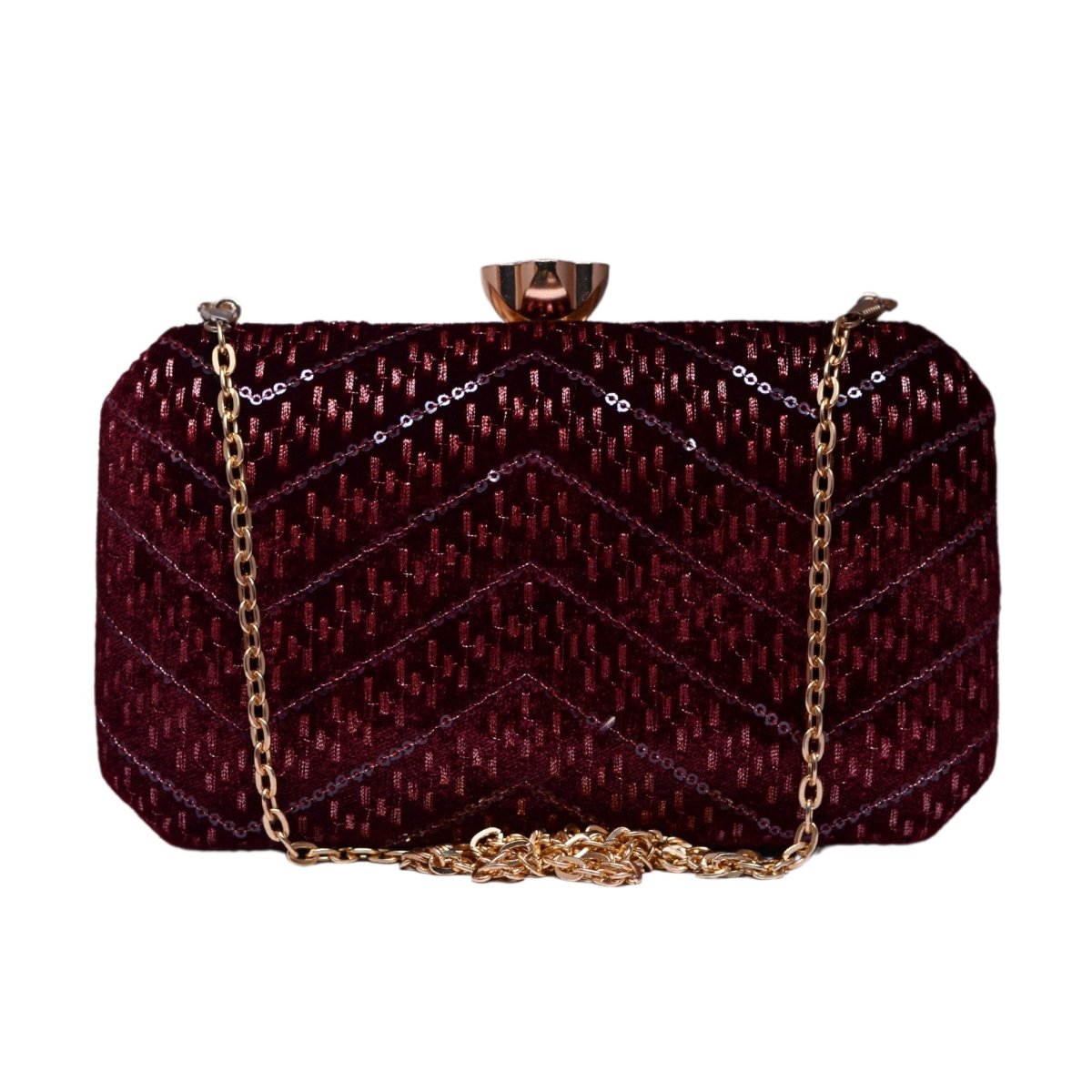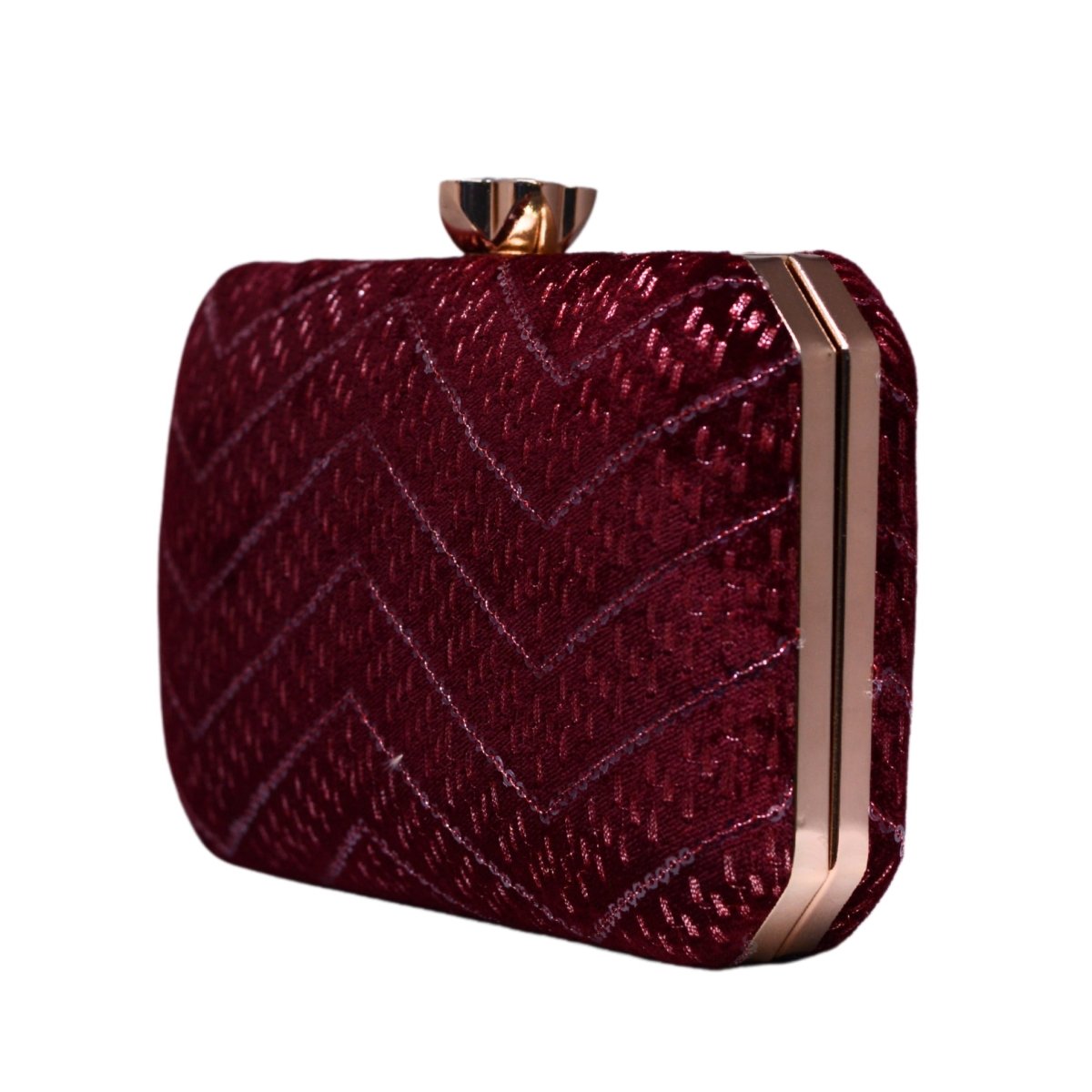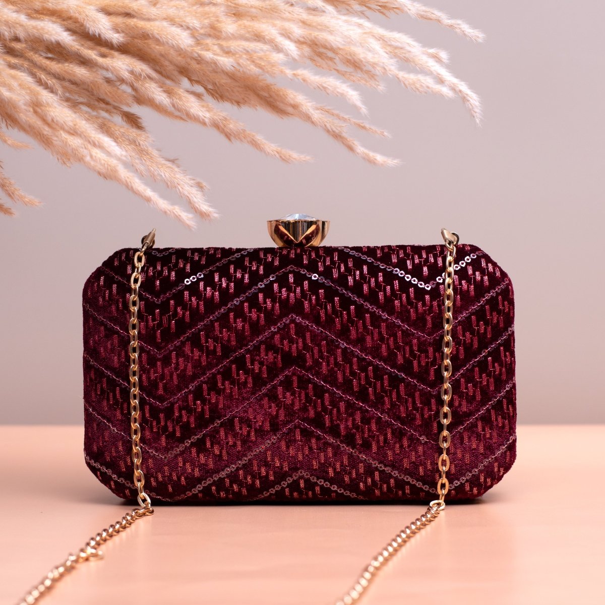 Maroon Zigzag Sequins Embroidery Fabric Clutch