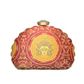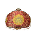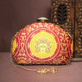 Maroon And Yellow Durga Printed D-Shape Clutch