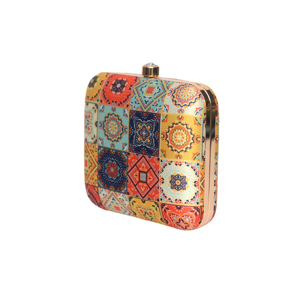 Multicolored Mandala Printed Clutch