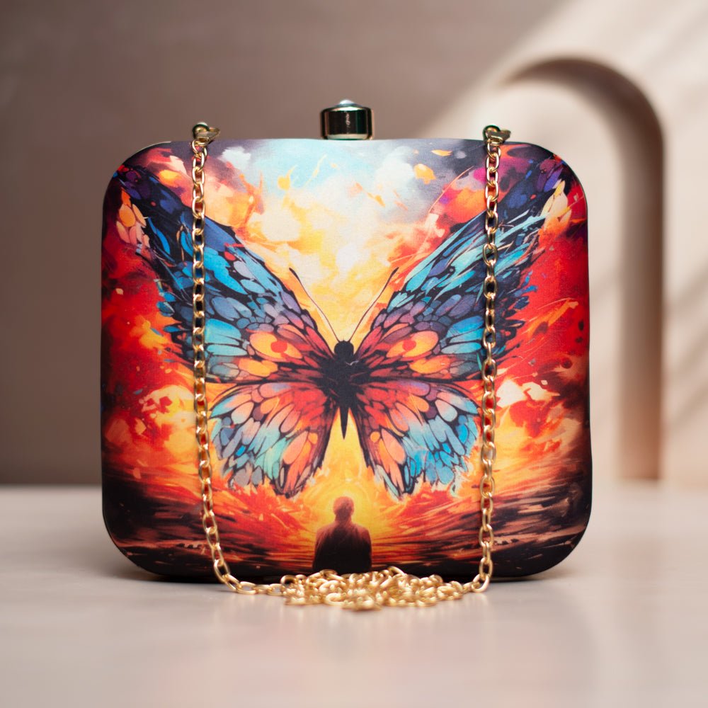 Multicoloured Butterfly Printed Clutch