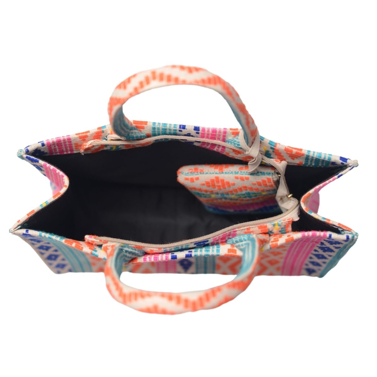 Multicoloured Jacquard Tote Bag With Utility Pouch