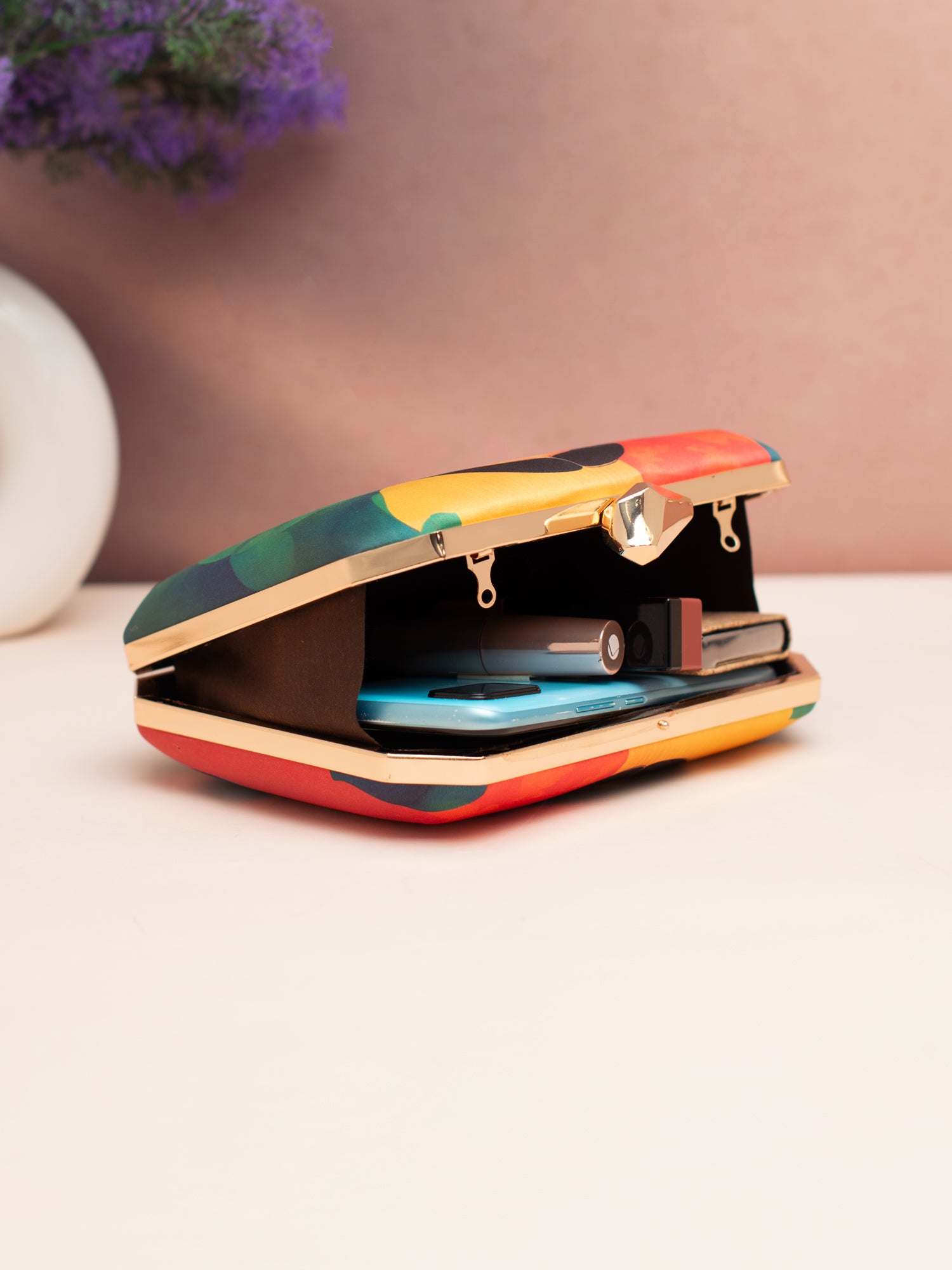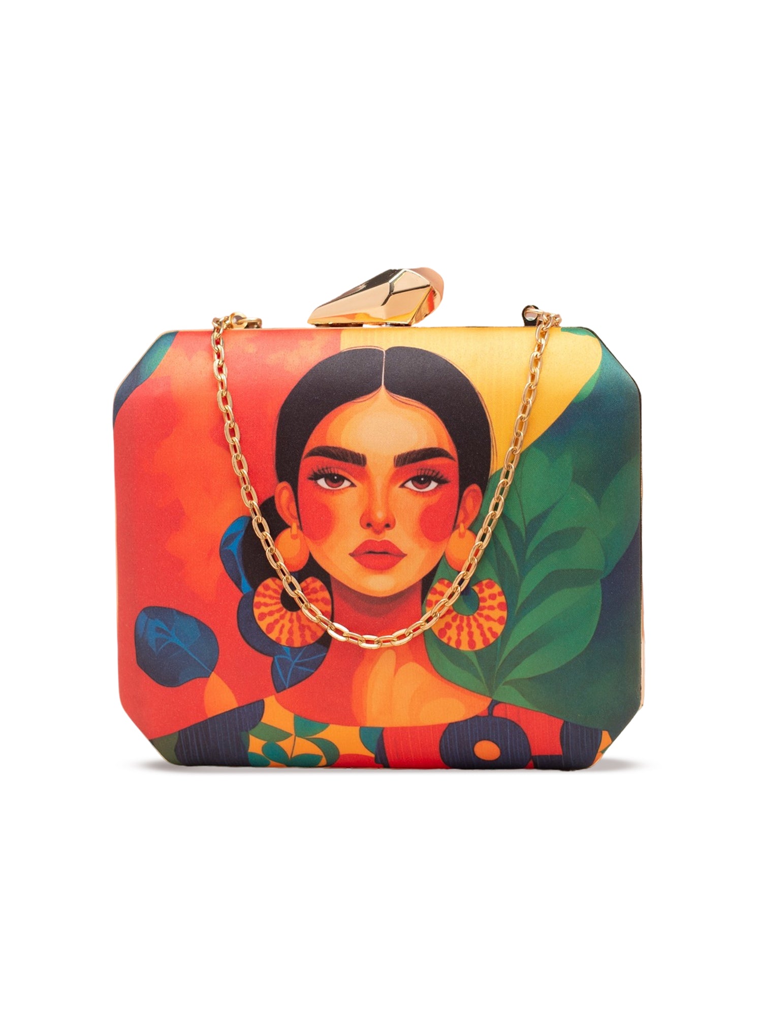 Add a burst of personality to every outing with these handcrafted clutches. Designed to blend fashion and art, each piece is a mini canvas—printed with vibrant illustrations, finished with a luxe hard-case body, and accented with a gleaming gold clasp and chain.