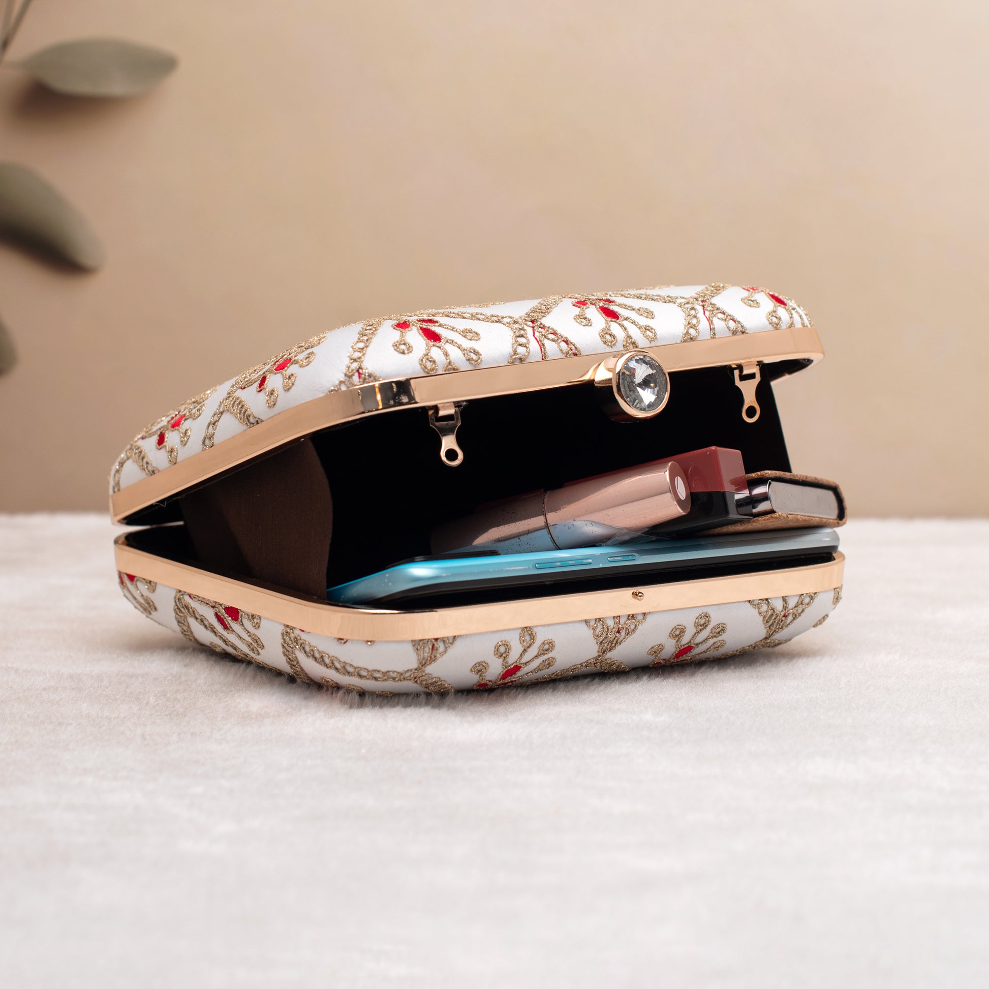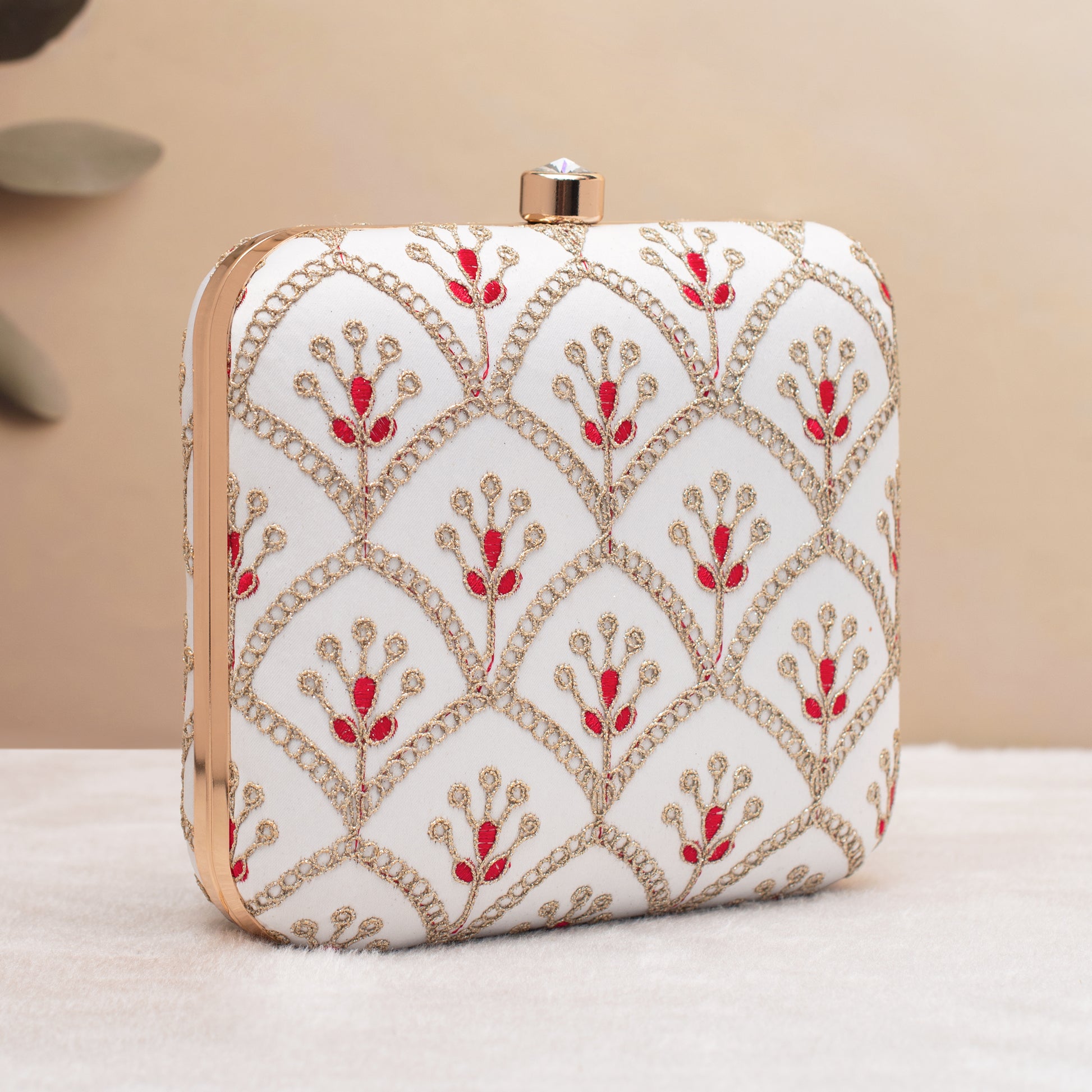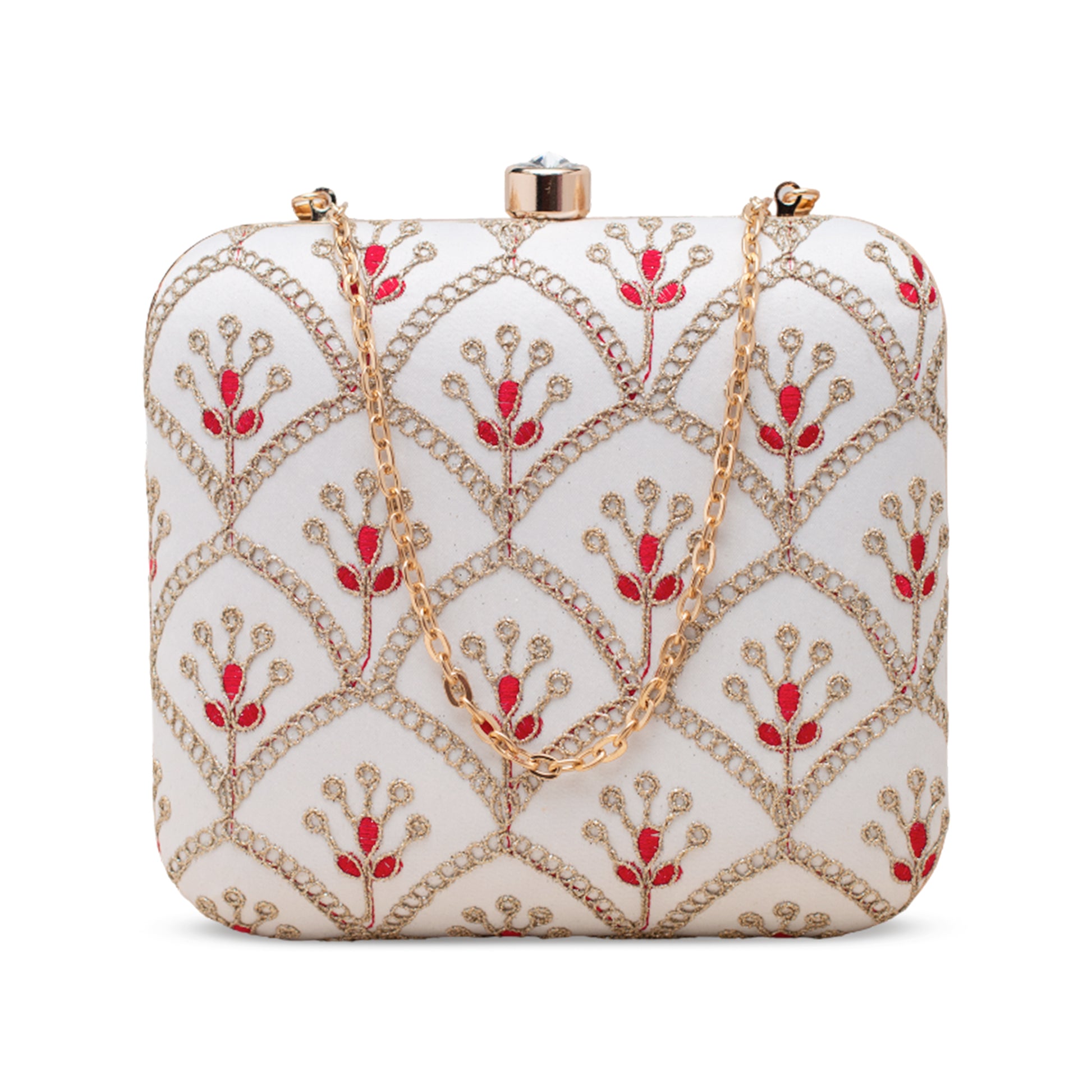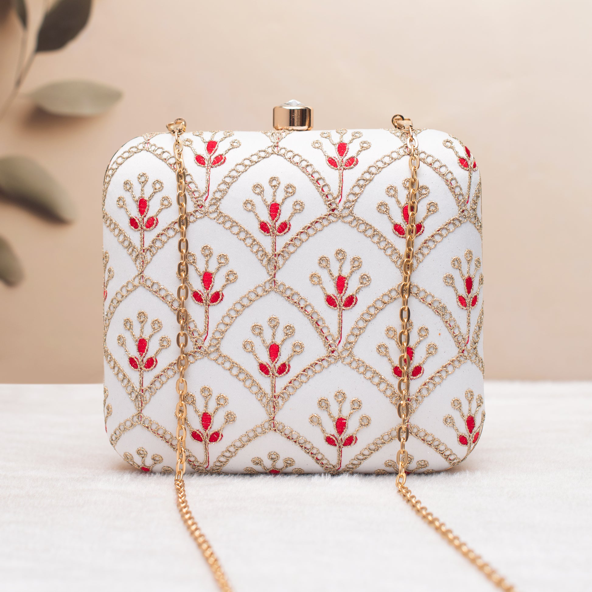 Add a burst of personality to every outing with these handcrafted clutches. Designed to blend fashion and art, each piece is a mini canvas—fabric with vibrant illustrations, finished with a luxe hard-case body, and accented with a gleaming gold clasp and chain