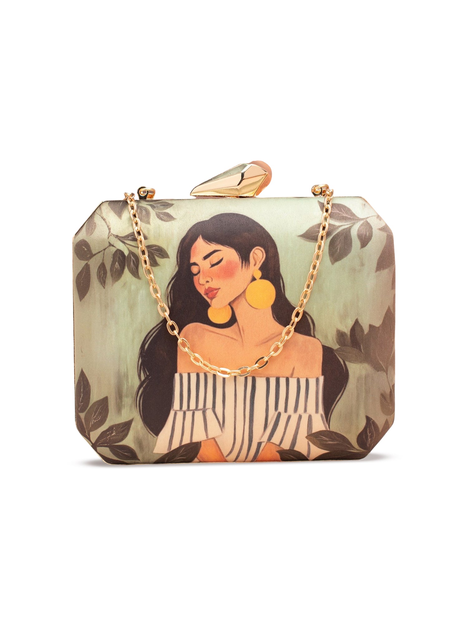 Add a burst of personality to every outing with these handcrafted clutches. Designed to blend fashion and art, each piece is a mini canvas—printed with vibrant illustrations, finished with a luxe hard-case body, and accented with a gleaming gold clasp and chain.