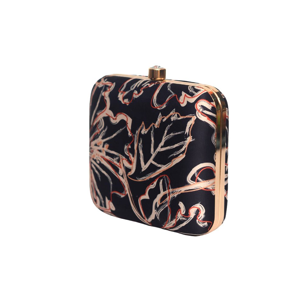 Orange Leafy Printed Clutch