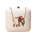 Add a burst of personality to every outing with these handcrafted clutches. Designed to blend fashion and art, each piece is a mini canvas—fabric with vibrant illustrations, finished with a luxe hard-case body, and accented with a gleaming gold clasp and chain
