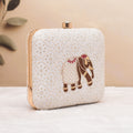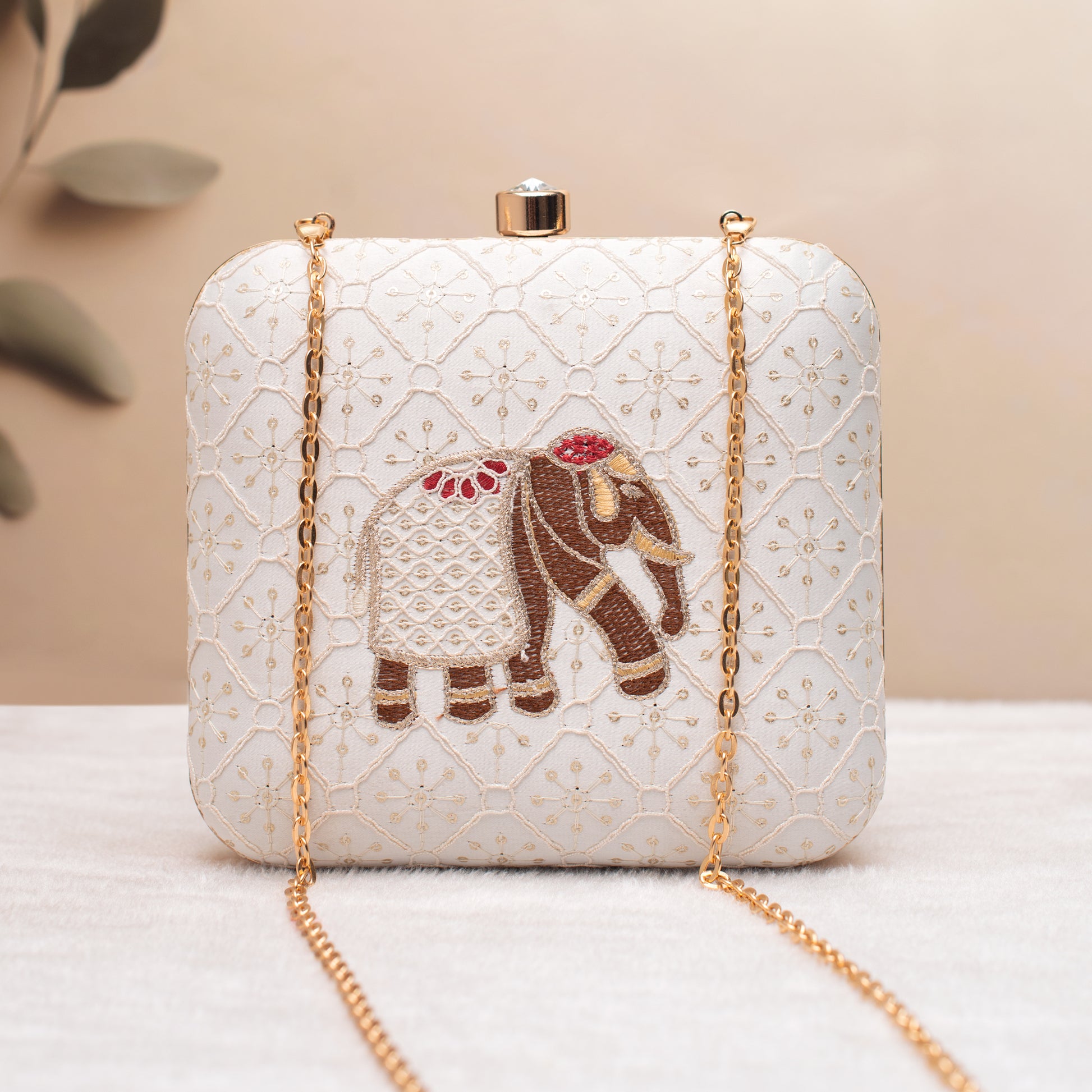 Artklim White with Brown - Red Colour Embroidery Clutch