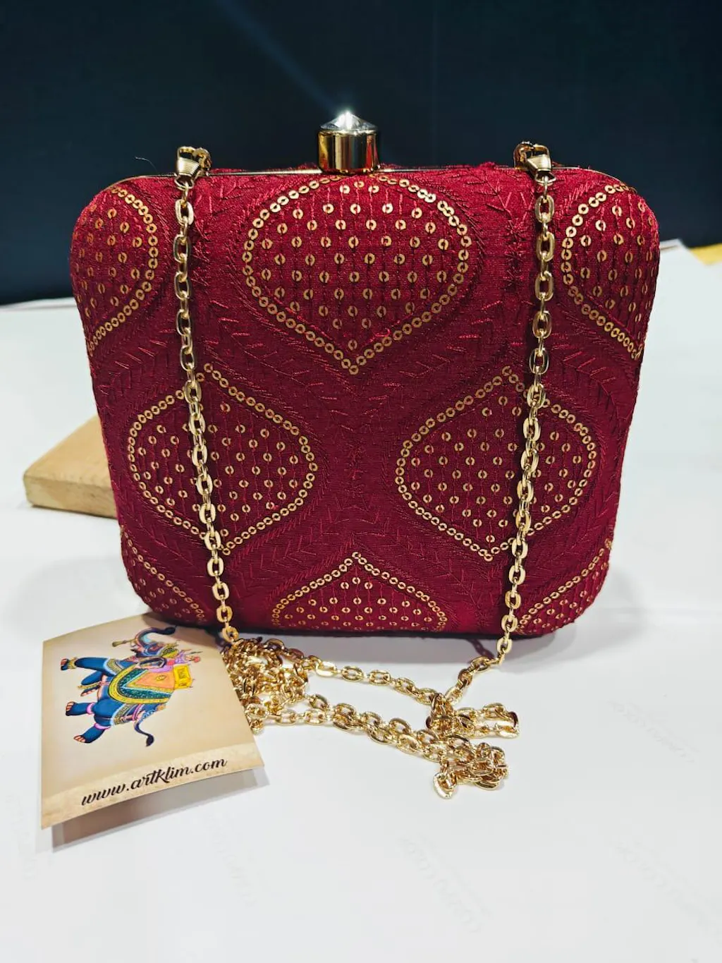 Red Embroidered Clutch