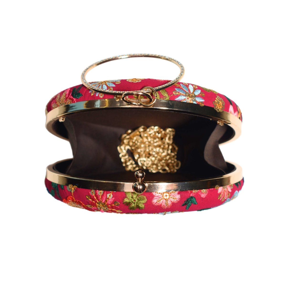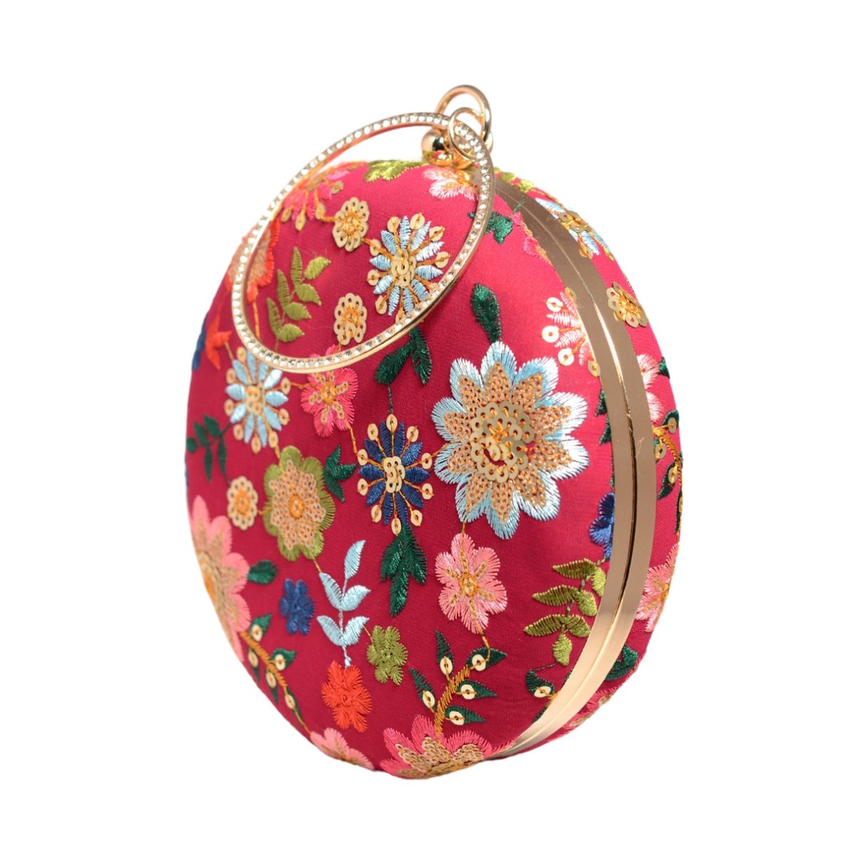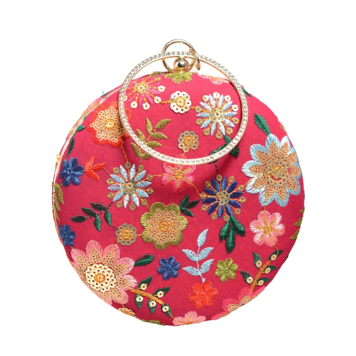 Red Floral Embroidery Round Clutch