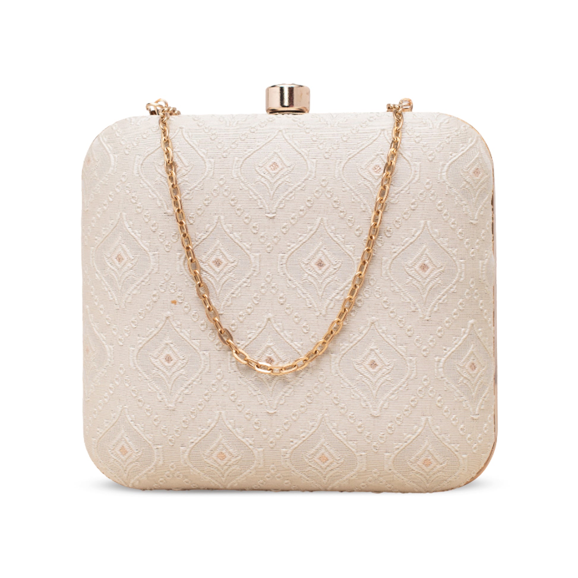 Add a burst of personality to every outing with these handcrafted clutches. Designed to blend fashion and art, each piece is a mini canvas—fabric with vibrant illustrations, finished with a luxe hard-case body, and accented with a gleaming gold clasp and chain