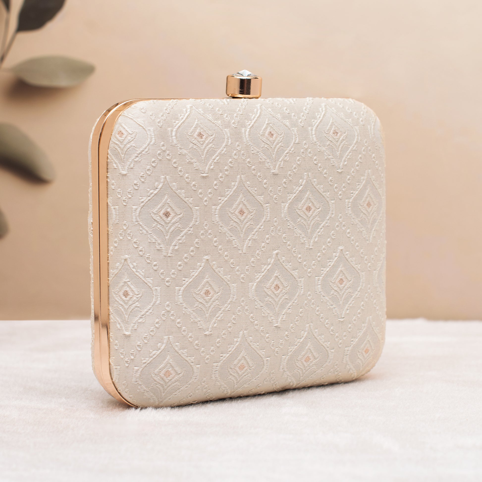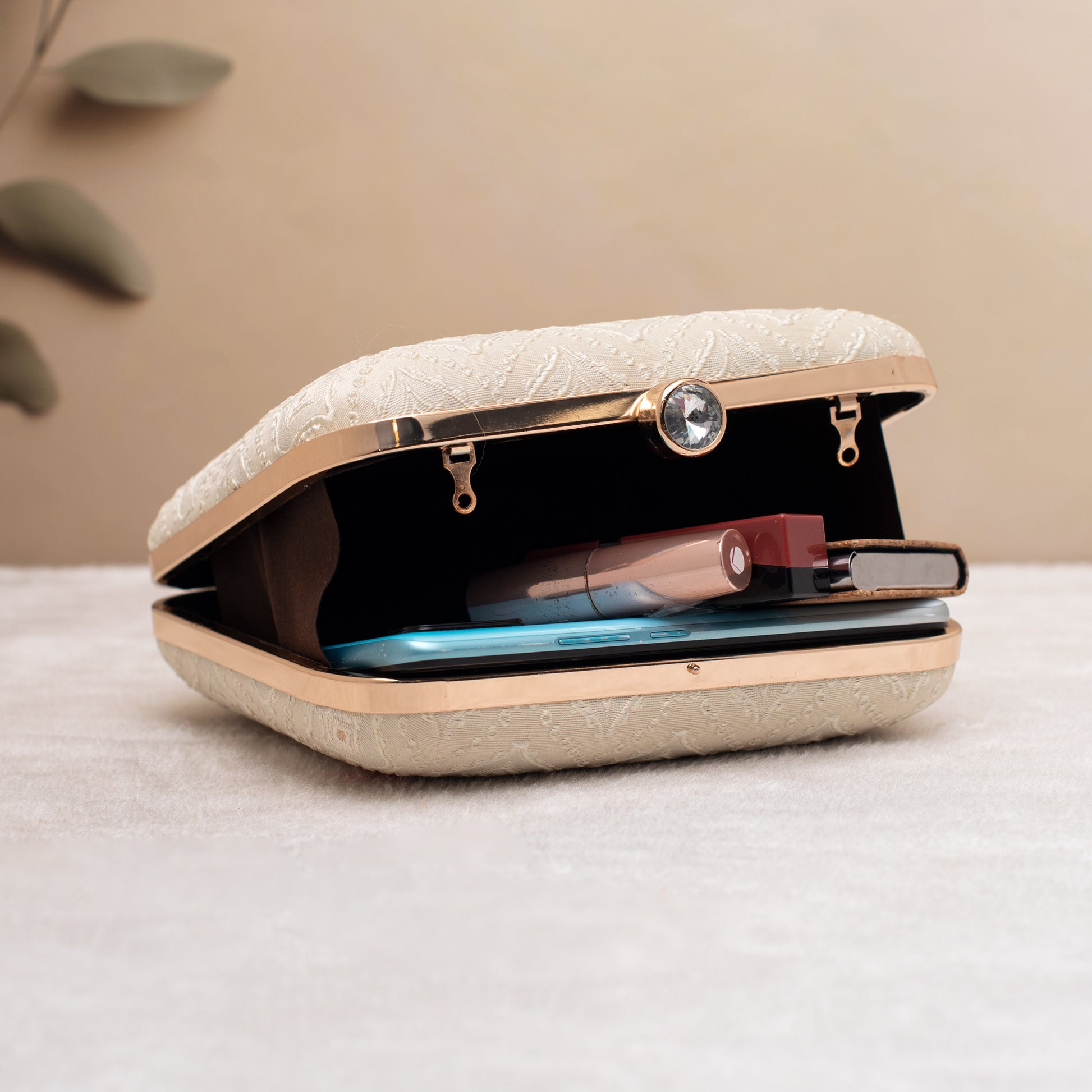 Artklim Off-White Minimal Thread Embroidery Clutch