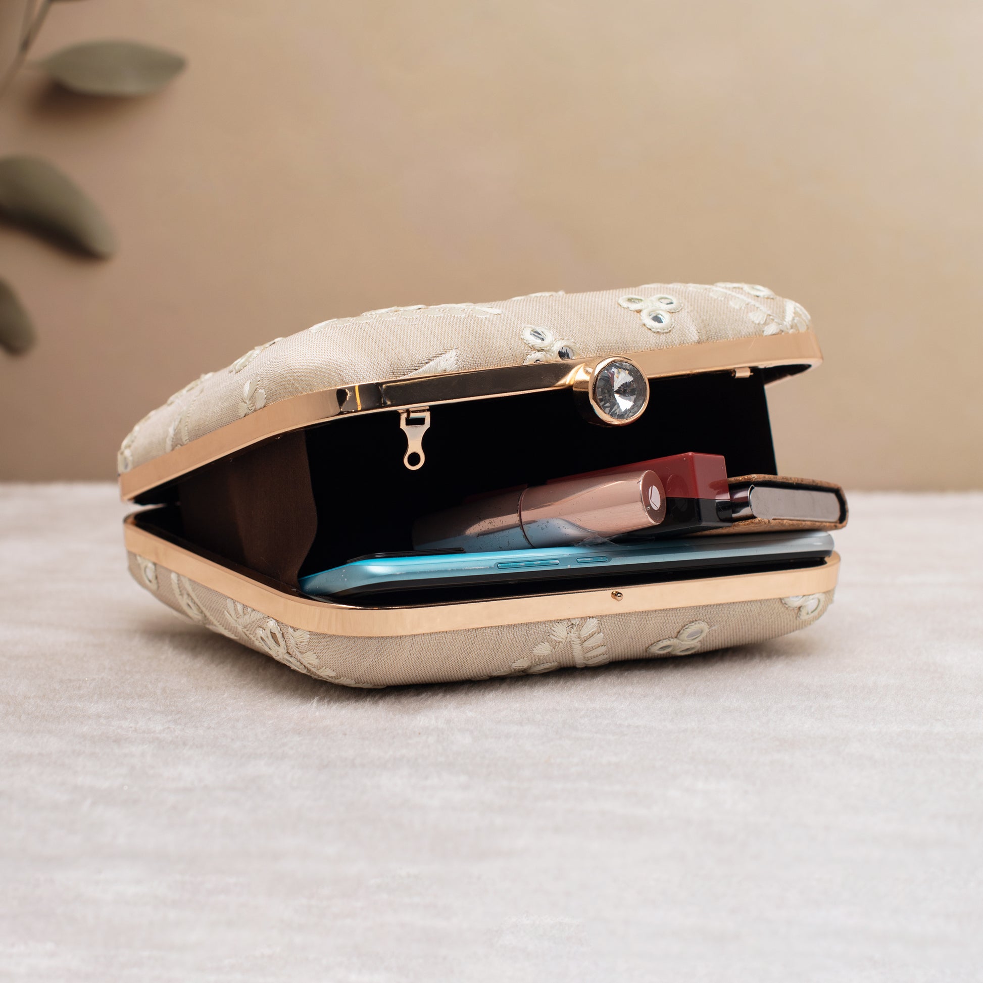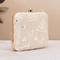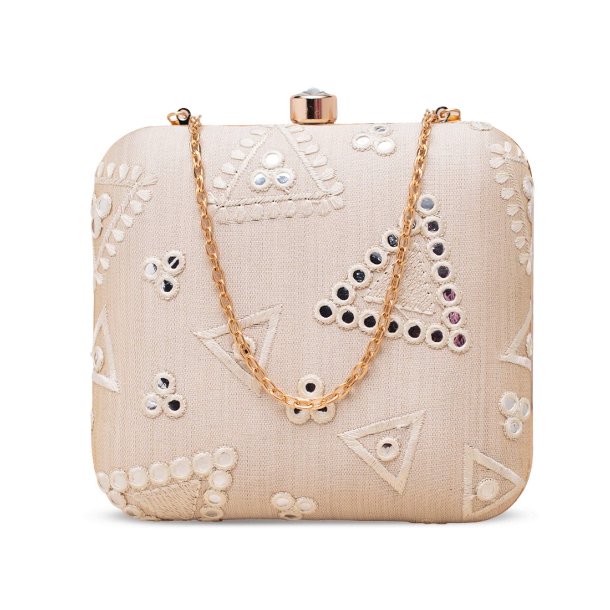 Artklim Beige With Mirror & Triangle Embroidery Clutch