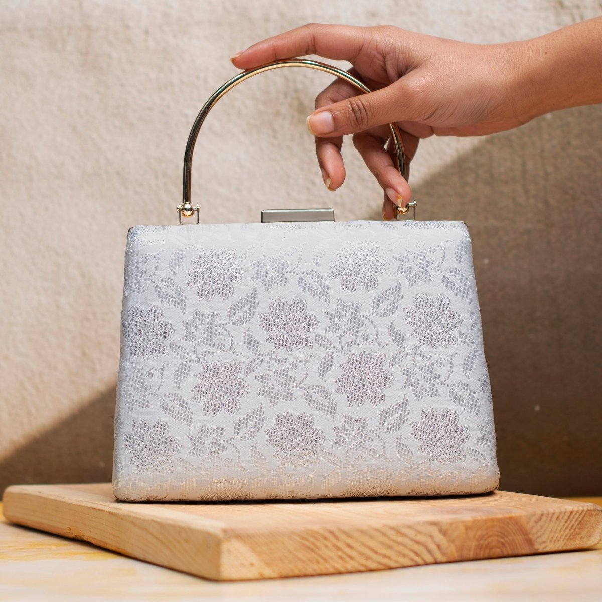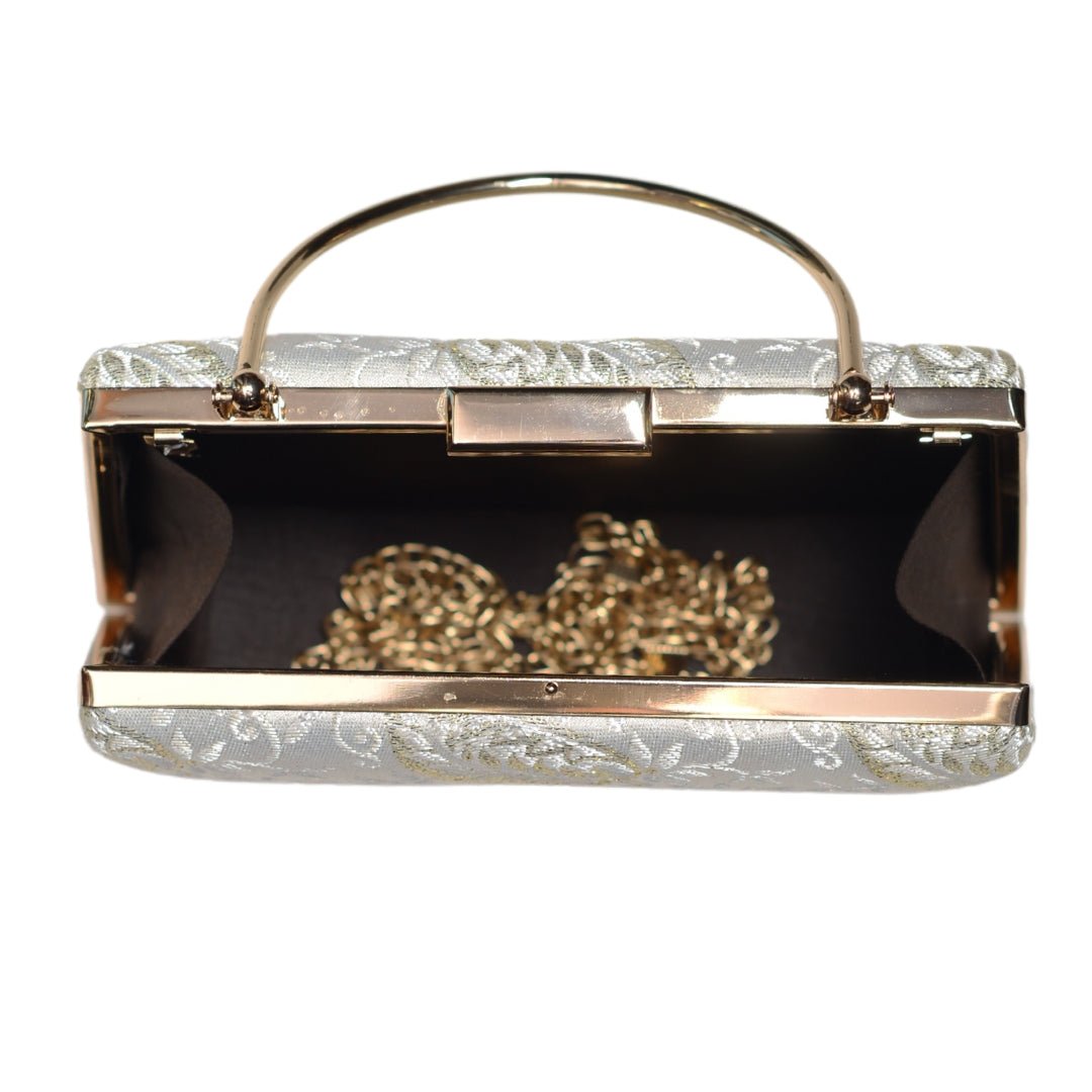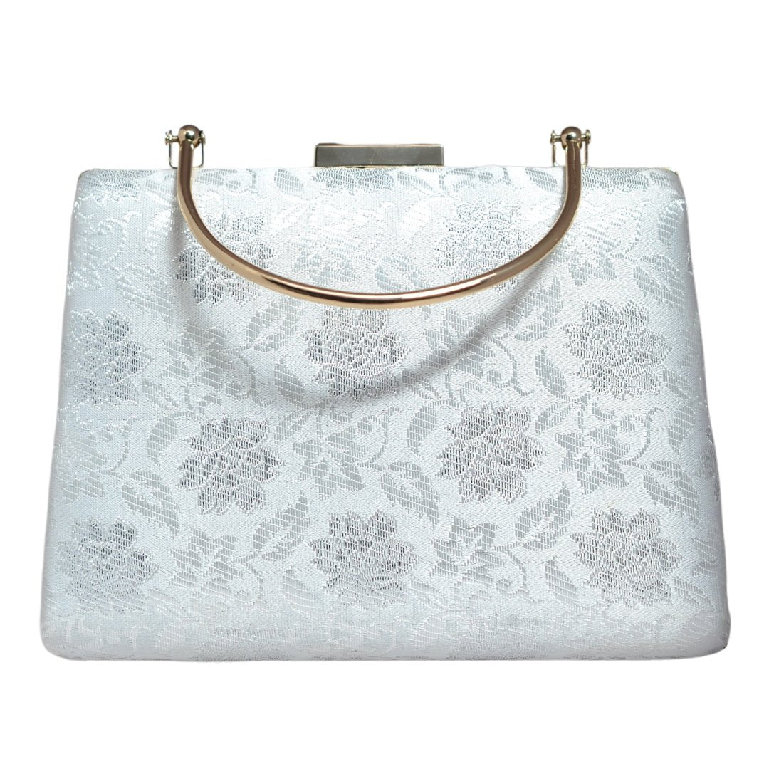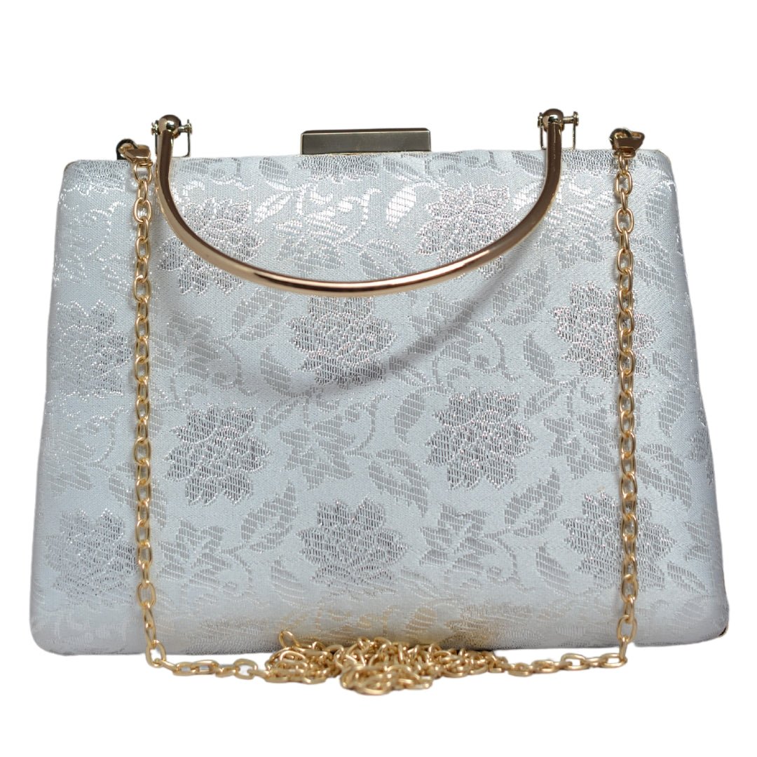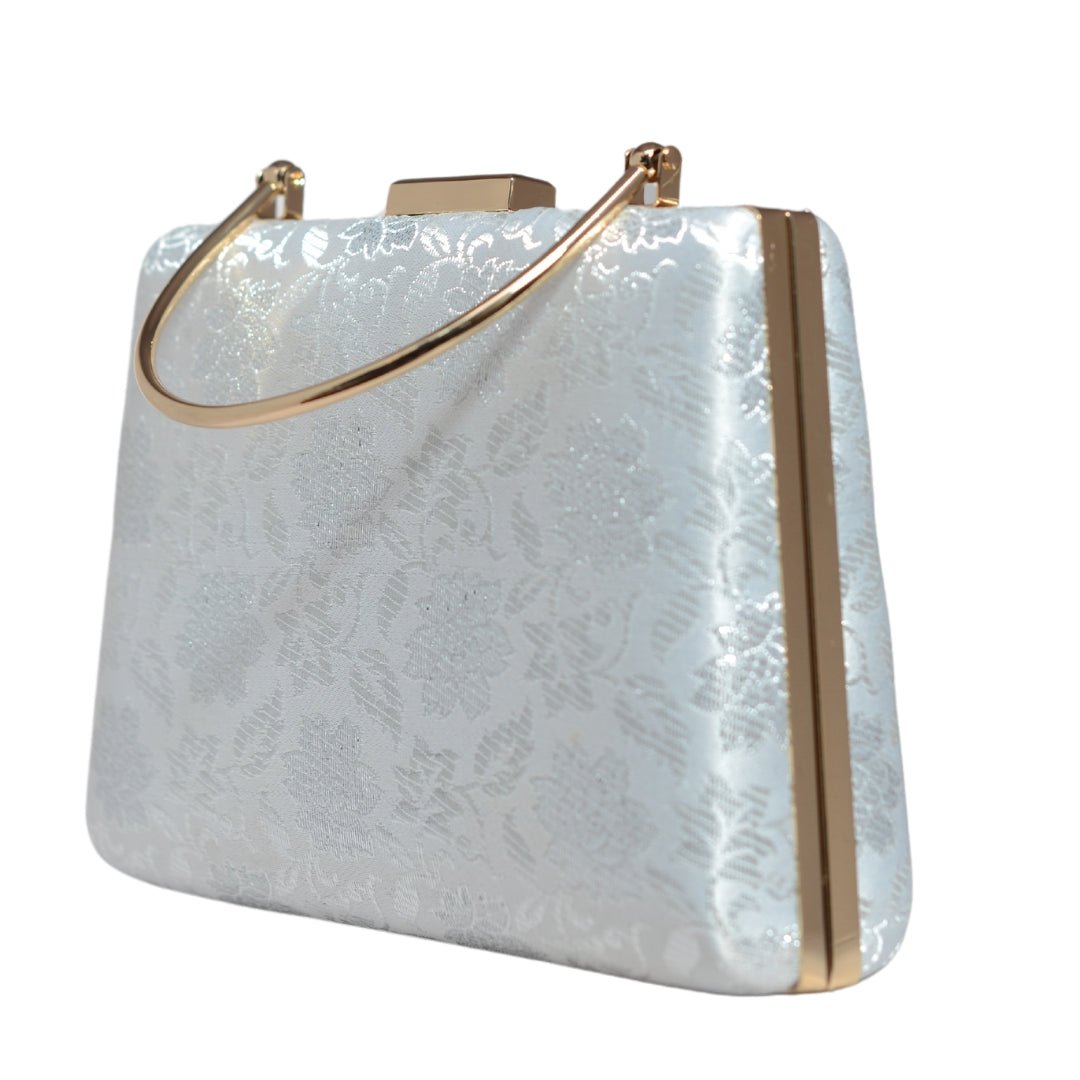 White And Silver Brocade Fabric Clutch