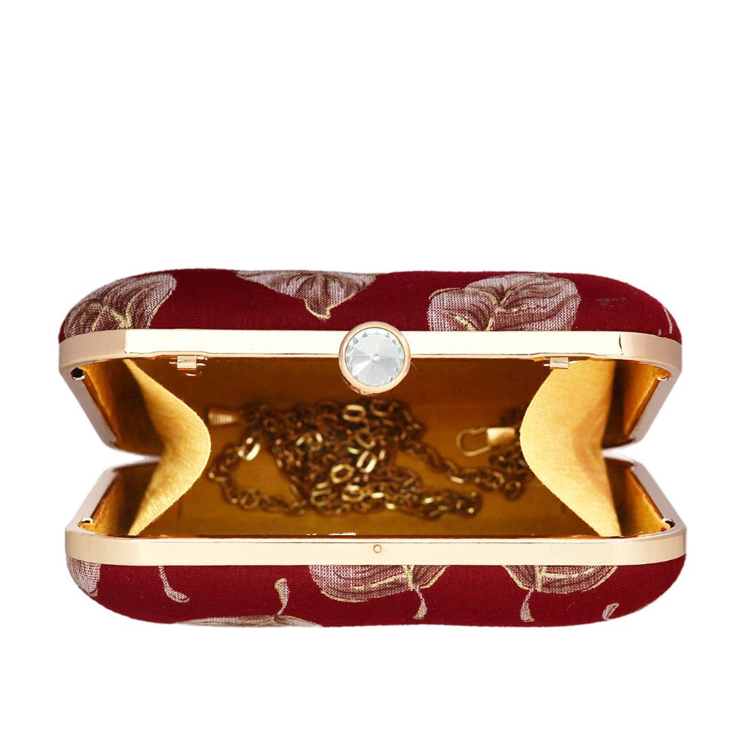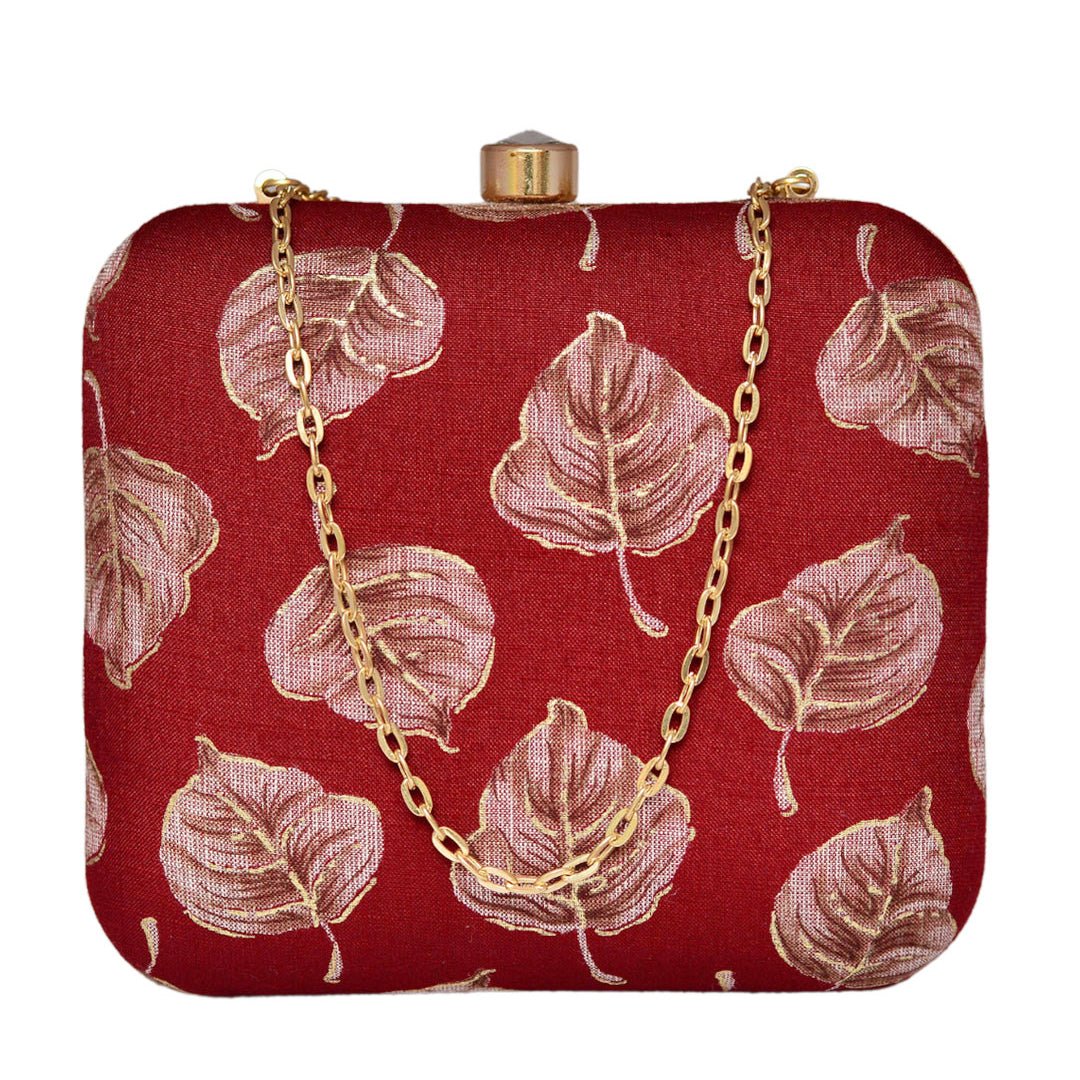 White Leaf Fabric Clutch