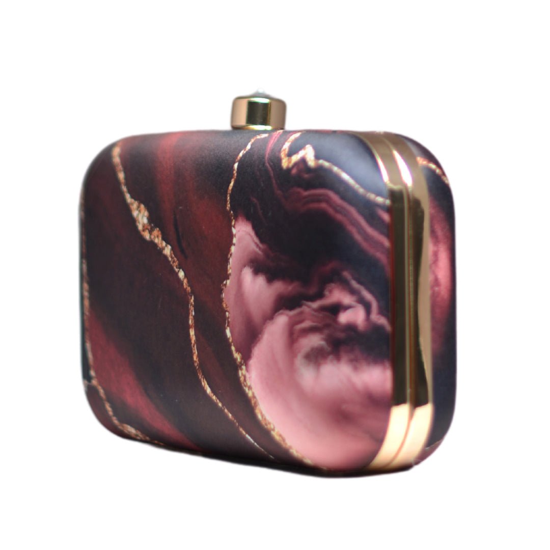 Wine Color Flow Art Printed Clutch