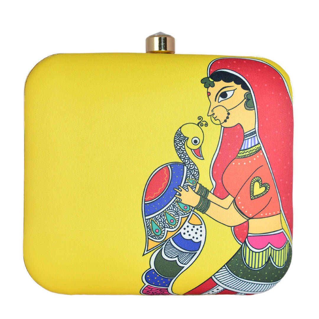 Women Peacock Printed Clutch