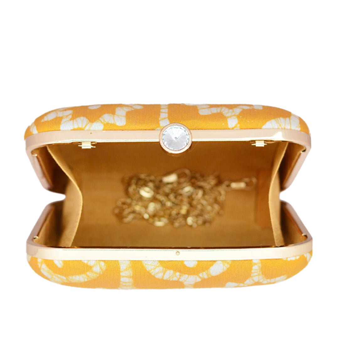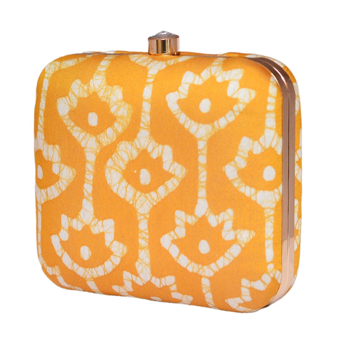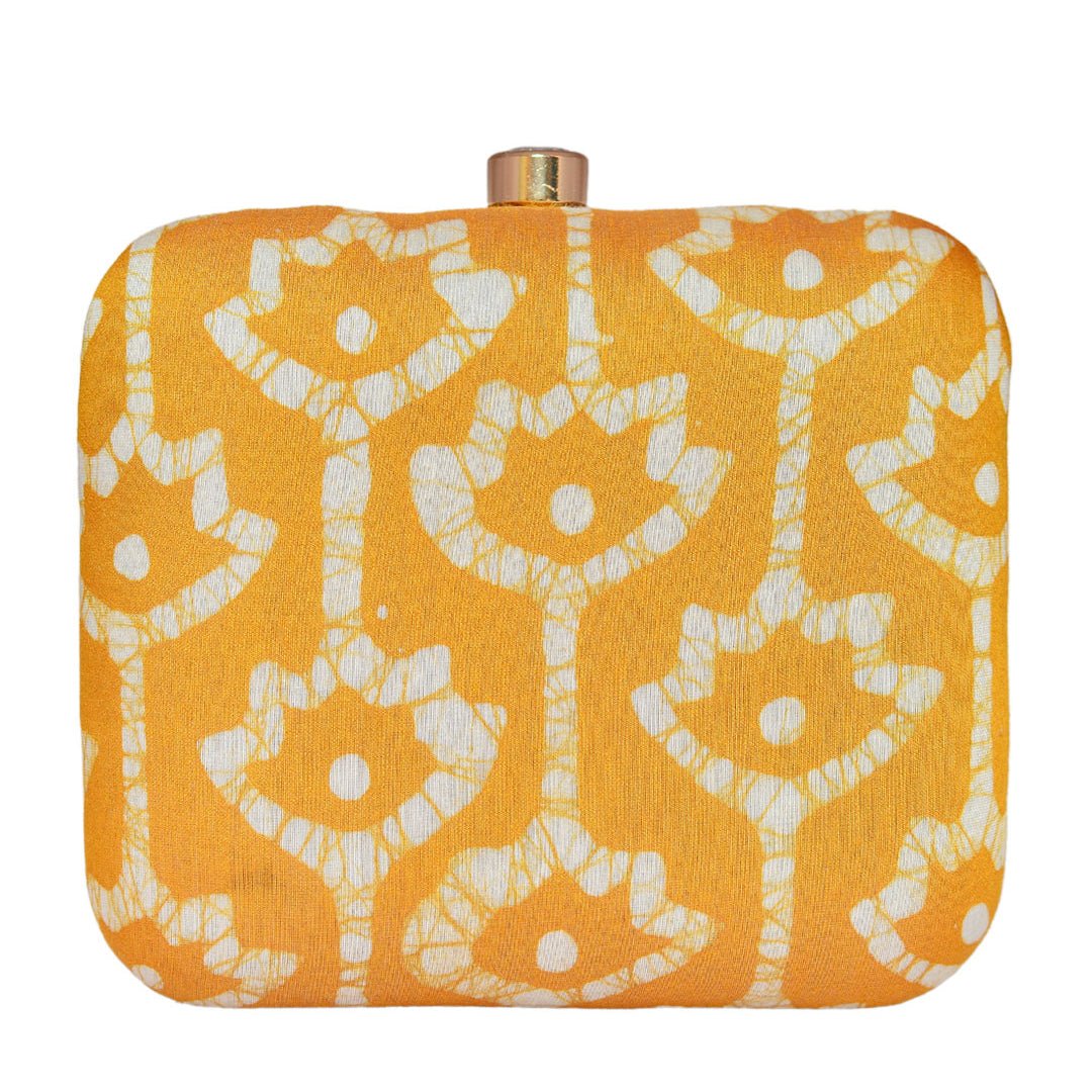 Yellow Fabric Printed Clutch