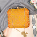 Yellow-Orange Brocade Fabric Clutch
